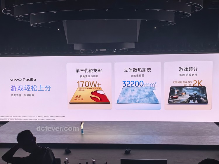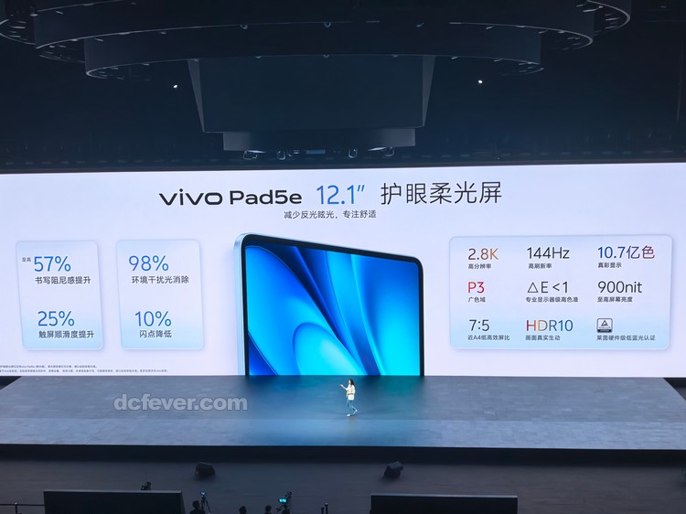 vivo Pad5e 是針對入門與中階市場設計的平板電腦,配備 12.1 吋 2.8K(解析度為 2800x1968)LCD 屏幕,並設有更護眼的柔光屏版本,具備最高 144Hz 更新率及 240Hz 觸控採樣率,同時支援 DC 調光技術,能有效減少反光並保護視力。內建高通 Snapdragon 8s Gen 3 處理器,搭載 Adreno 750 GPU,確保流暢運行效能。