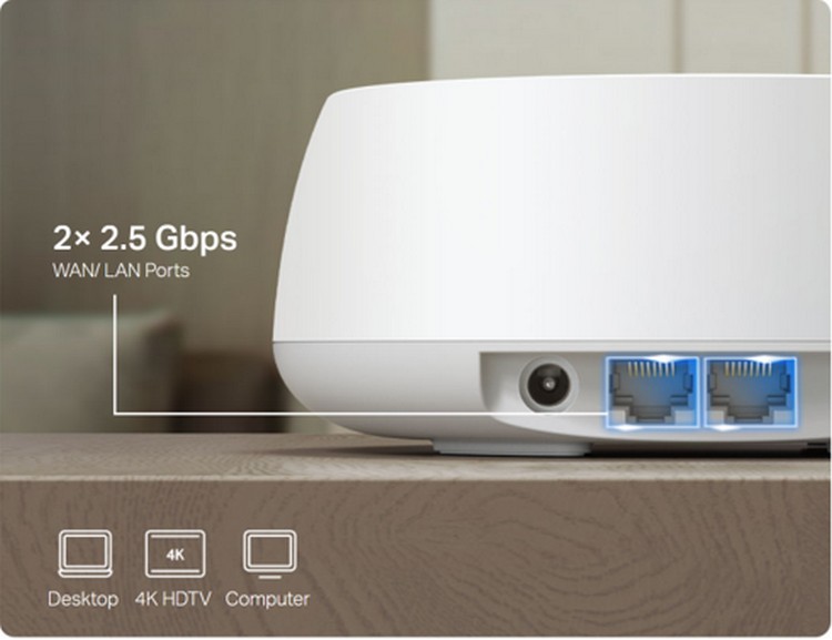 TP-Link Deco BE25 採用最新 Wi‑Fi 7 標準,支援 240MHz 頻寬及 Multi-Link Operation 技術,可同步運用 2.4GHz 與 5GHz 頻段。根據規格資料,5GHz 頻段理論速度達 4324Mbps,2.4GHz 可達 688Mbps,並設有 2.5Gbps WAN/LAN 有線連接埠,實際表現較傳統 1G 網絡有提升空間。