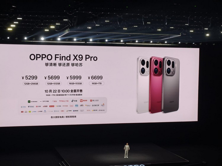 Find X9 Pro:12GB+256GB 售價人民幣 5,299 元(約港幣 HK$5,630),最高配置 16GB + 1TB 售價為人民幣 6,699 元(約港幣 HK$7,110)。