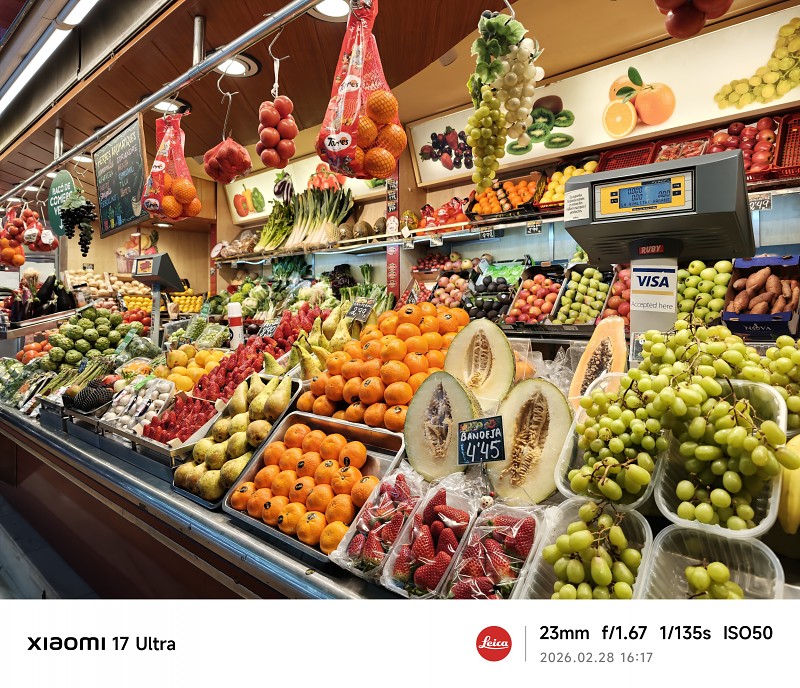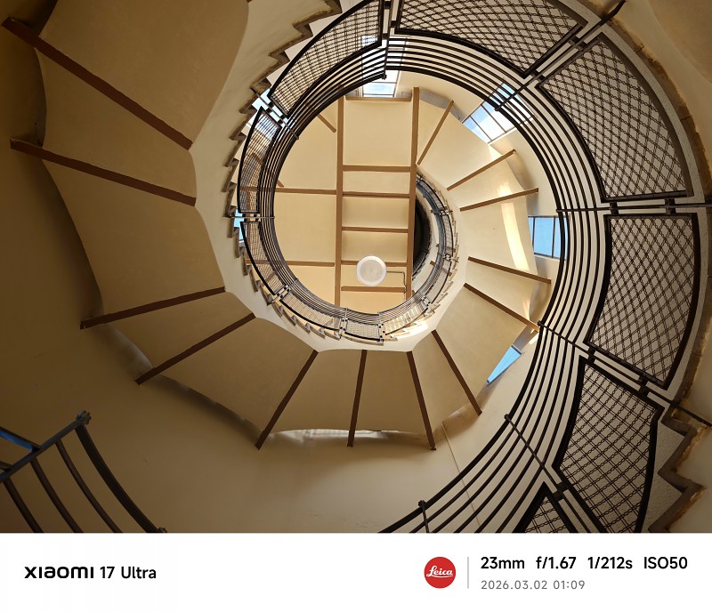小米 17 Ultra 廣角鏡採用一吋感光元件,提供 23mm 等效焦段,f/1.67 大光圈在日間拍攝中展現極致細節還原,影像扎實,相片清晰度極高,色彩濃郁討好。這有賴此機鏡頭鏡片質素極高,LOFIC 技術令相片輸出的動態範圍大幅提升,無論拍攝風景、物件及人像均有相當出色的表現。低光拍攝使用 ISO 800