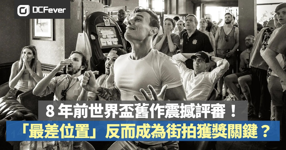這張作品是使用 Leica Q (Typ 116) 配合閃光燈拍攝,即使快門速度僅為 1/60 秒,Mike Taylor 利用相機的 28mm 廣角定焦鏡,精準捕捉緊張球迷的畫面。有趣的是,Mike Taylor 有時為了拍到狂熱球迷,經常要在各大酒吧「碰運氣」,有些老闆視攝影師為禁忌,有些則大方邀請他坐下來飲杯酒。