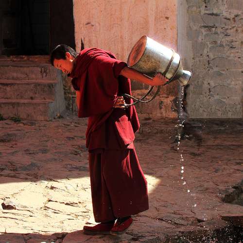 倒水的僧人