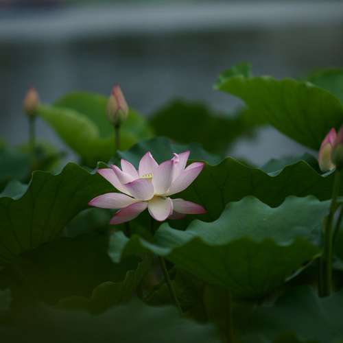 通透荷花綠葉配