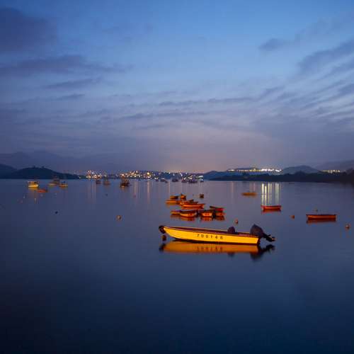 夕陽下的機場海面