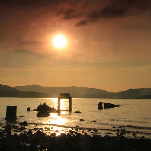 殘破碼頭的黃昏