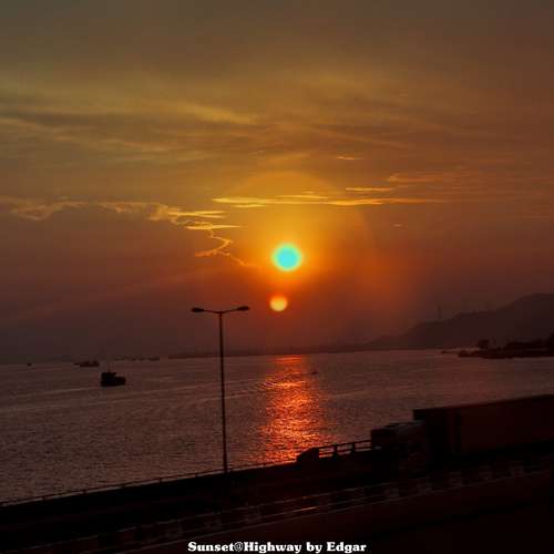 黃昏。公路