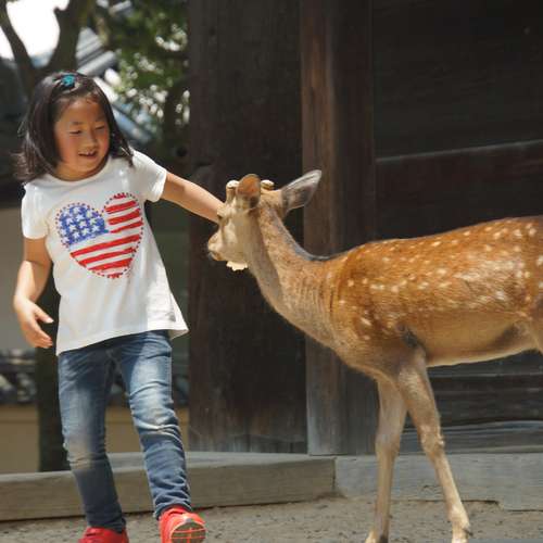 小女孩與奈良小鹿