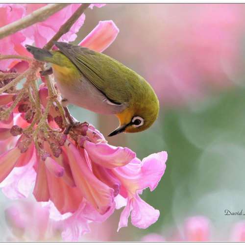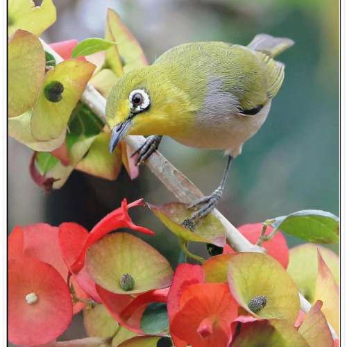 雀鳥...123(暗綠繡眼鳥...紅花風玲木)