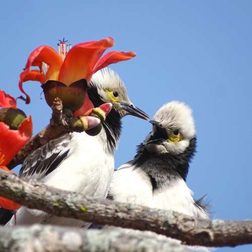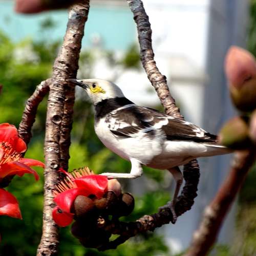 黒領椋鳥與紅棉
