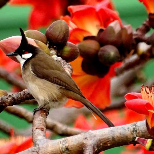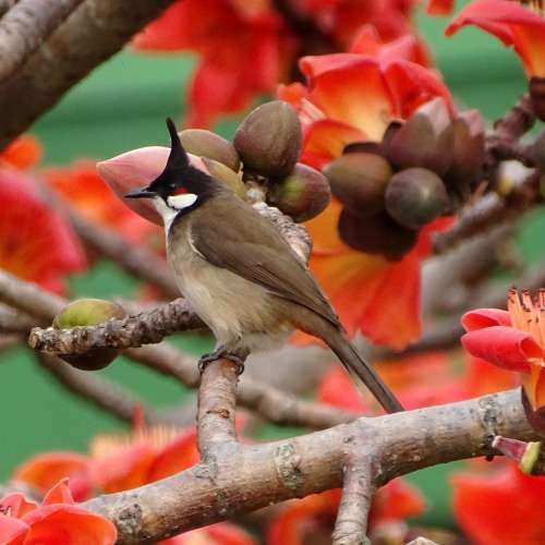 紅耳鵯愛紅花