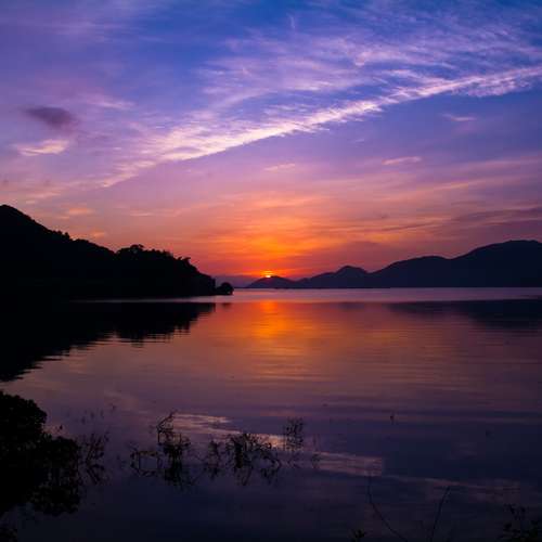 湖影日出