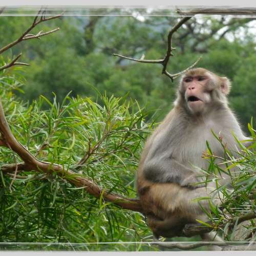 猴坐樹影