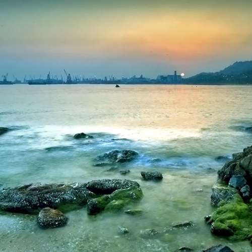 夕陽影照浪潮來