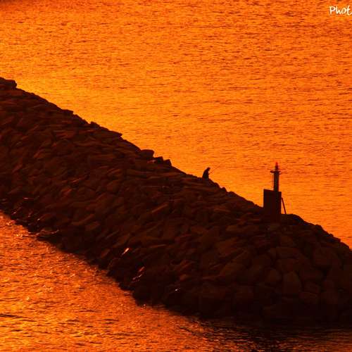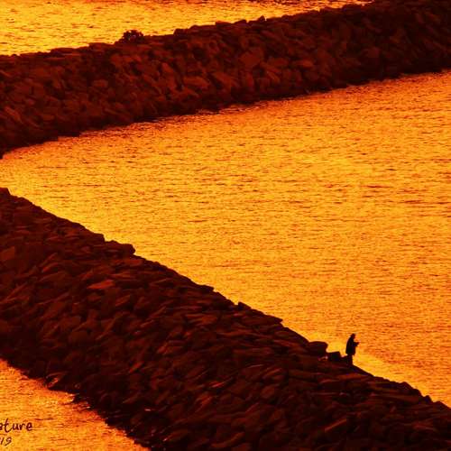 日落垂釣。
