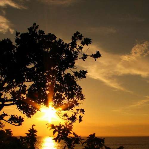 大澳日落樹影。