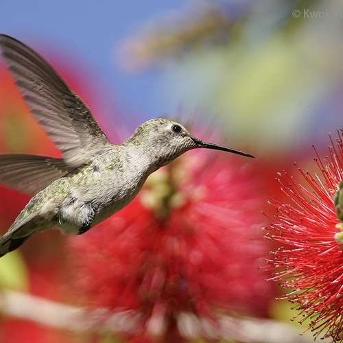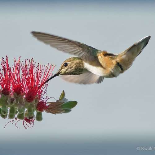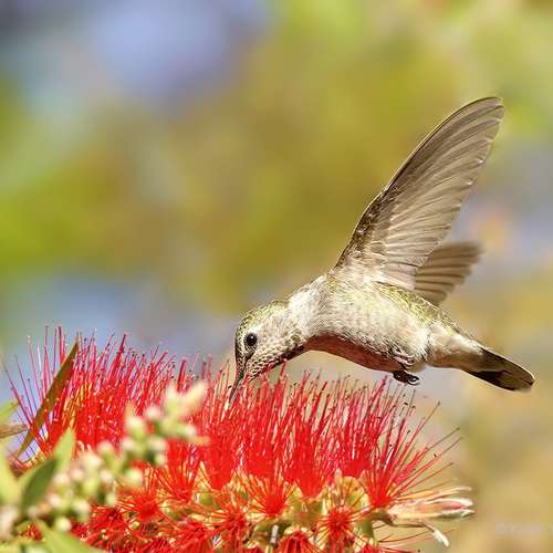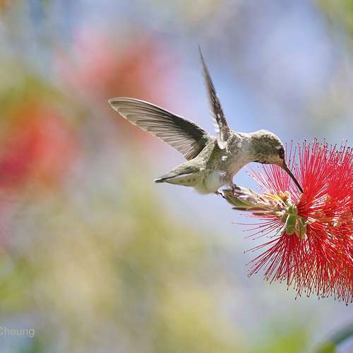 瓶刷花上的蜂鳥
