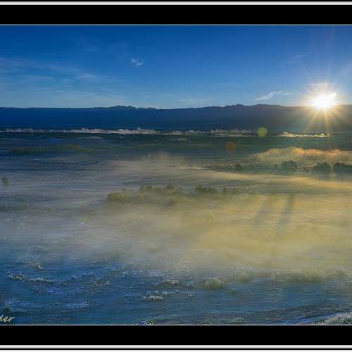 日出。晨霧。 沖乎爾