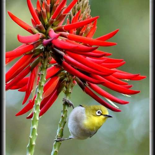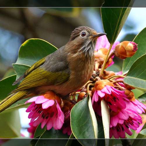 綠翅短腳鵯 (Mountain Bulbul) + 紅花荷(吊鍾皇)