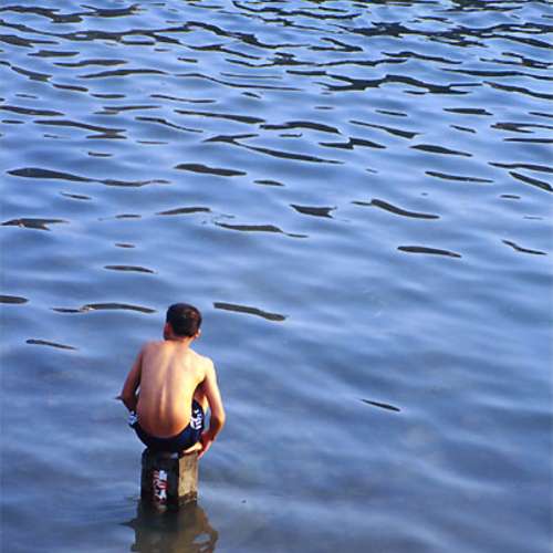 在水中央