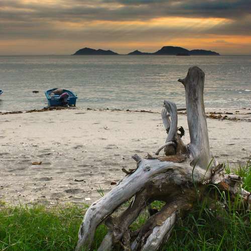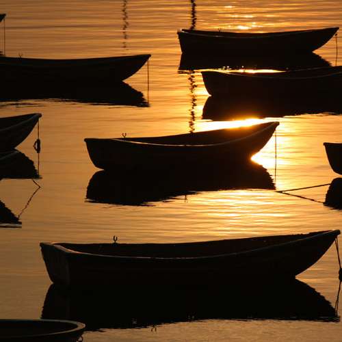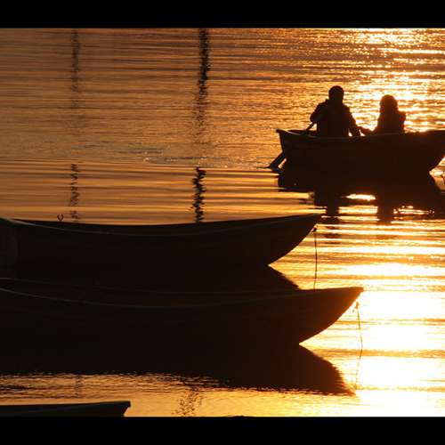 晚霞映輕舟