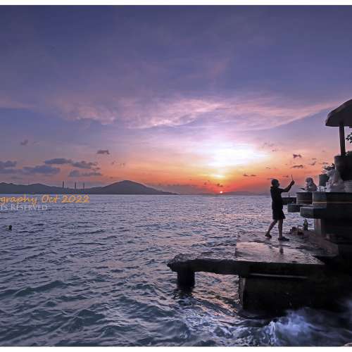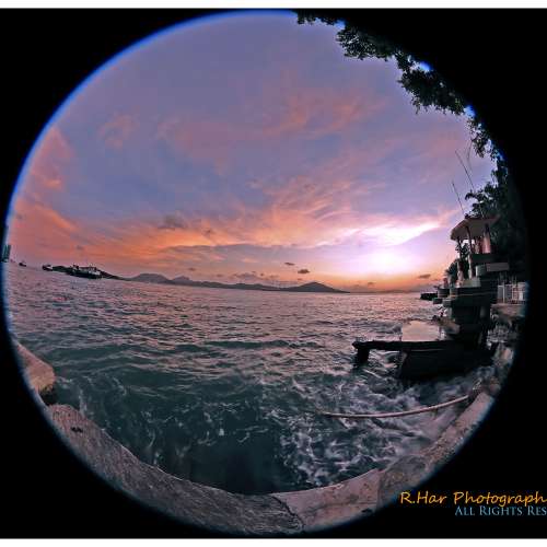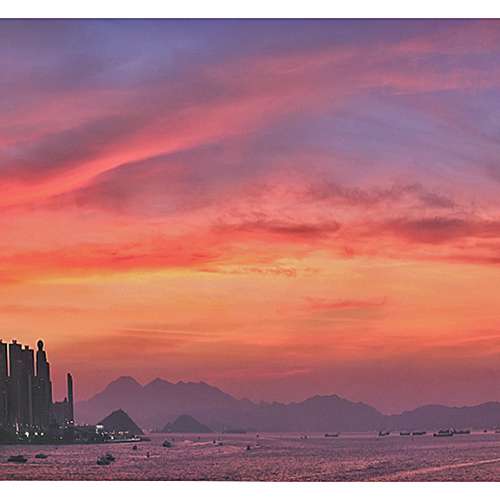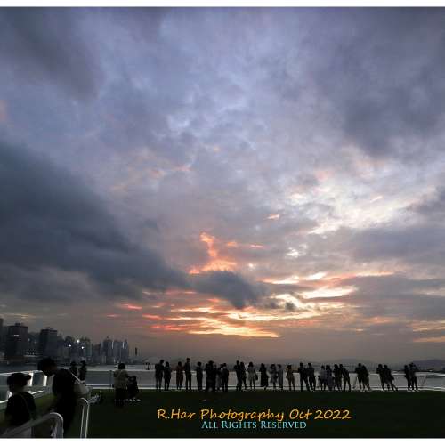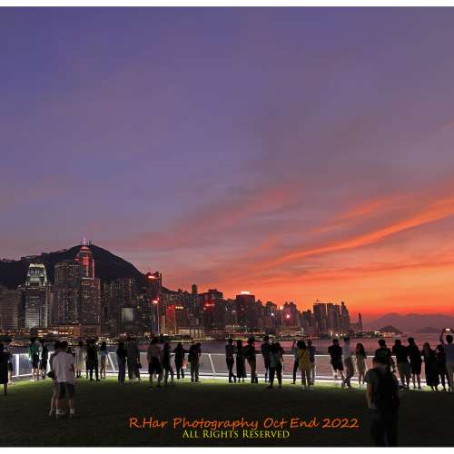 靚夕燒天全景 (Photo-merge of Stunning Harbour Sunset Clouds)