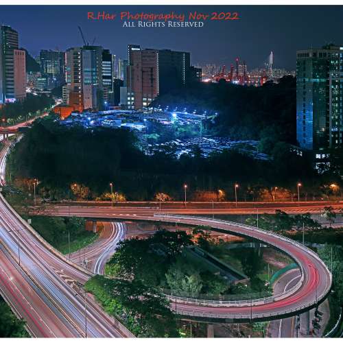 橫度車軌夜景 (Horizontal View of Light Trails with Night Scenes)