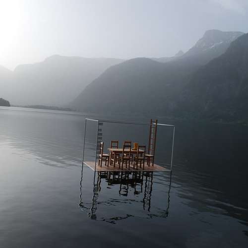 在水中央