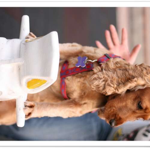 坐搖搖車的狗狗
