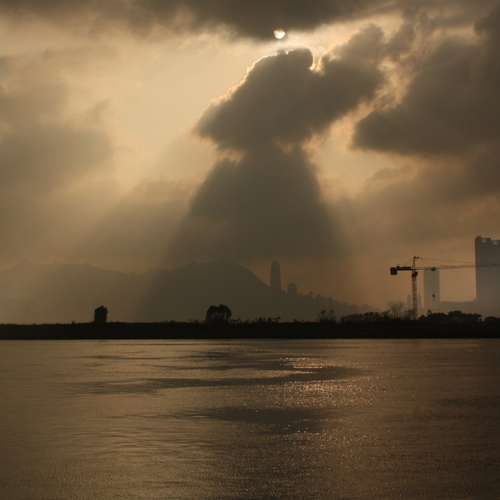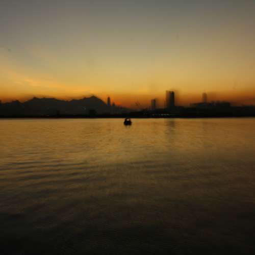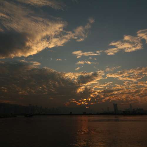 日落與貨輪
