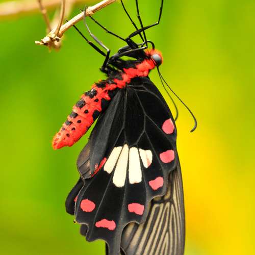 羽化中的紅珠鳳蝶