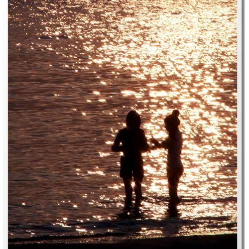 黃昏海灘的女孩