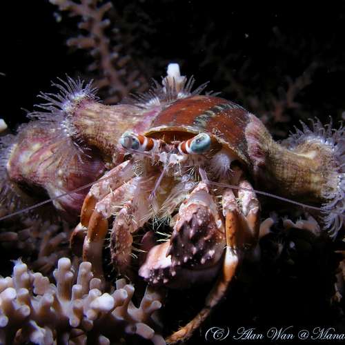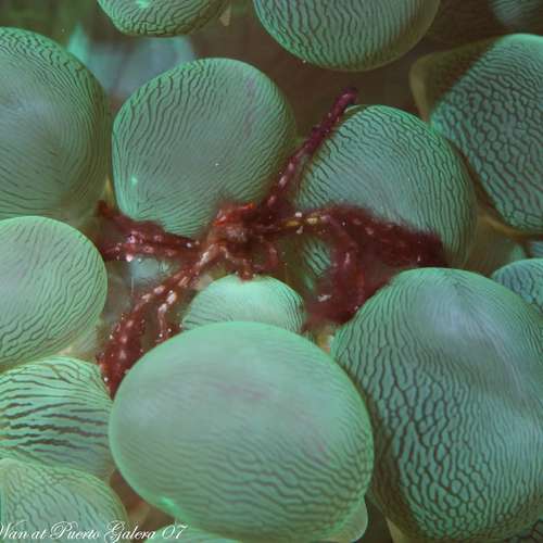 orang-utan crab with bubble coral
