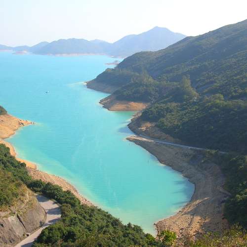 側逆光下的水庫