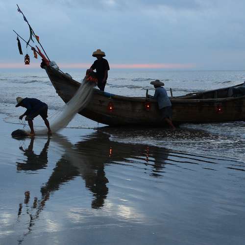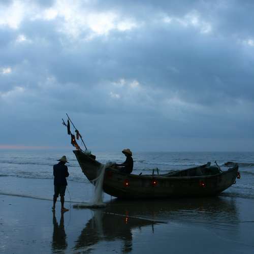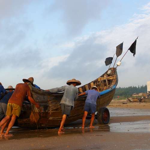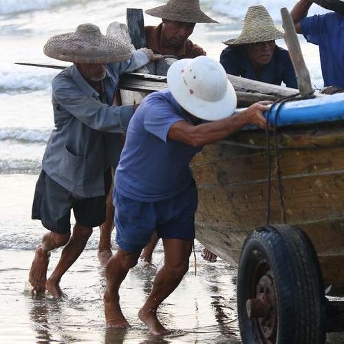 日出了 漁民準備出海