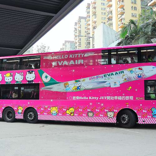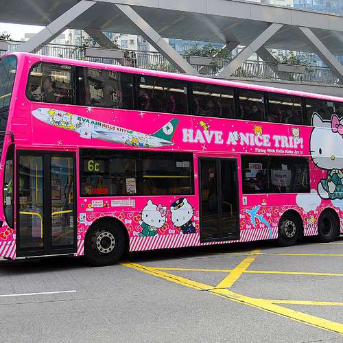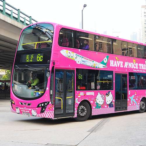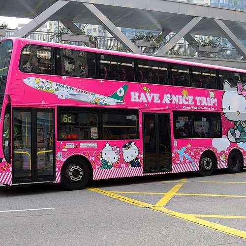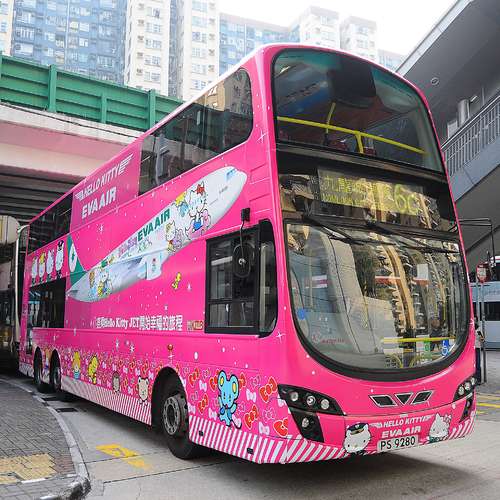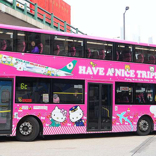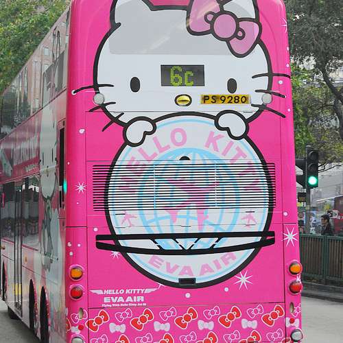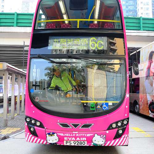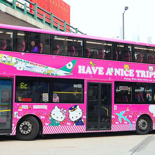 有隻HELLO KITTY坐左係架巴士
