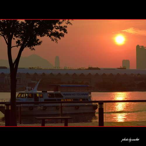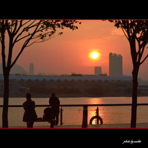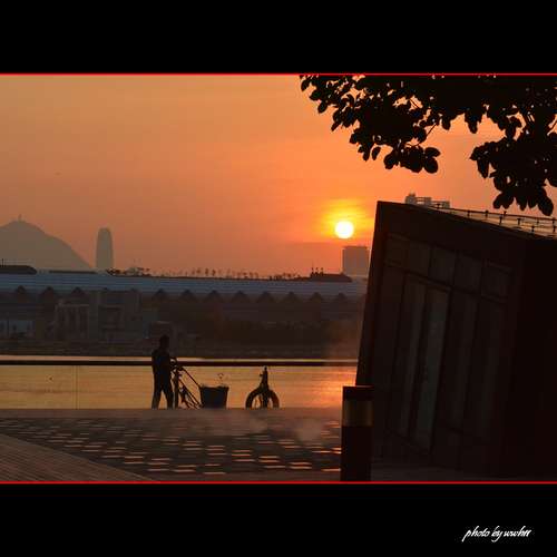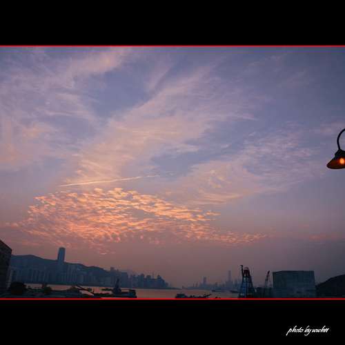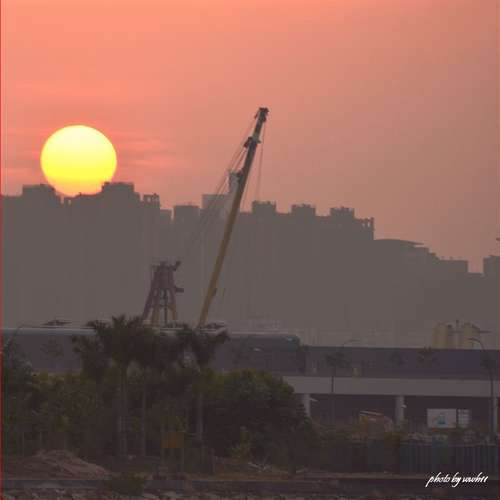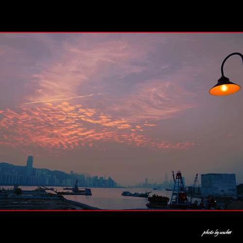 晚燈與落霞齊輝