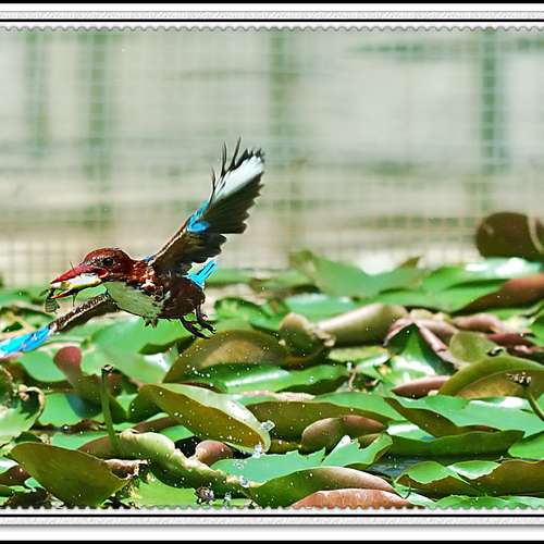 白胸荷塘担大魚.