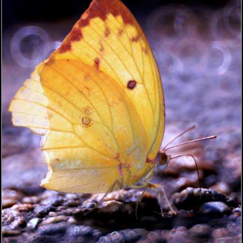 驕陽泛照含羞蝶..攏翼難掩透蝶光