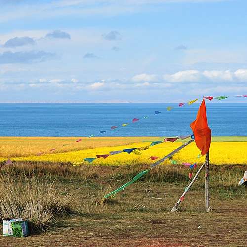 青海湖與油菜花田