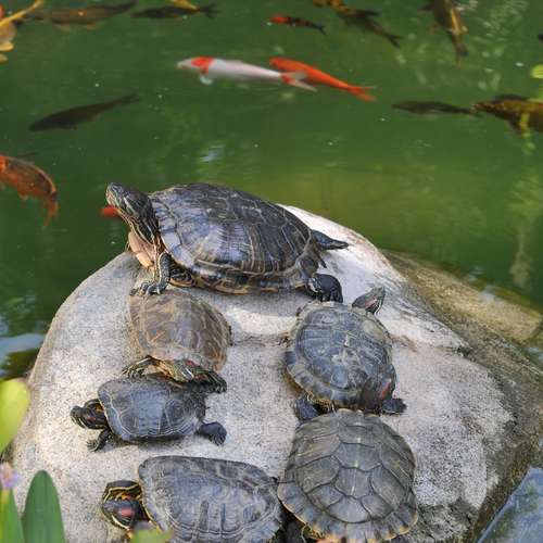 龜仙人一家相聚哂太陽