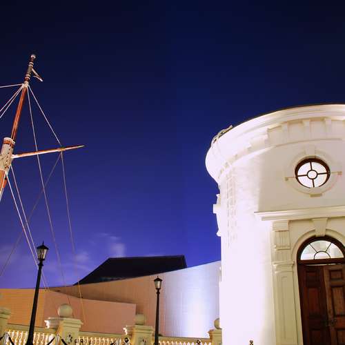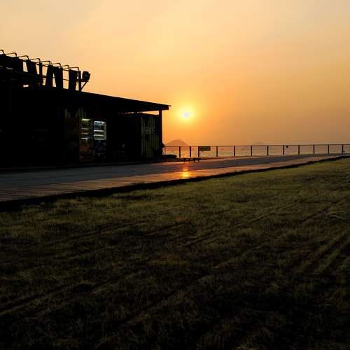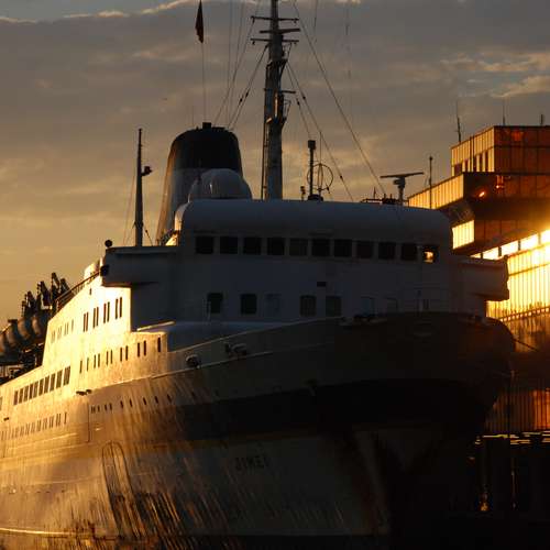 斜陽下的遊輪