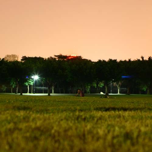一個人在草坪上