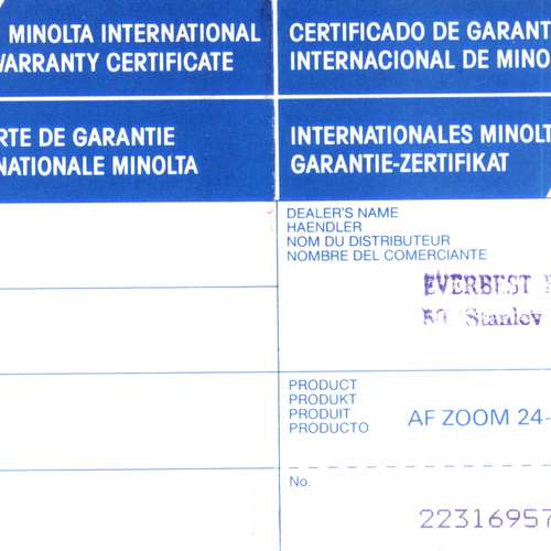 24-85Guarantee Card
