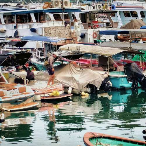 颱風過後, 上船檢查愛妻。
