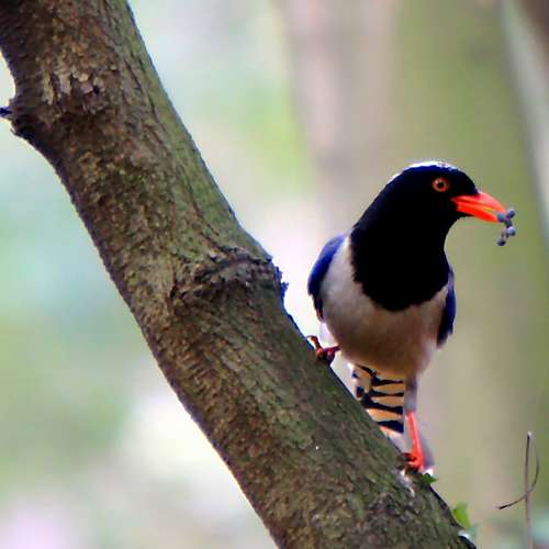 红嘴长尾蓝鹊的早餐