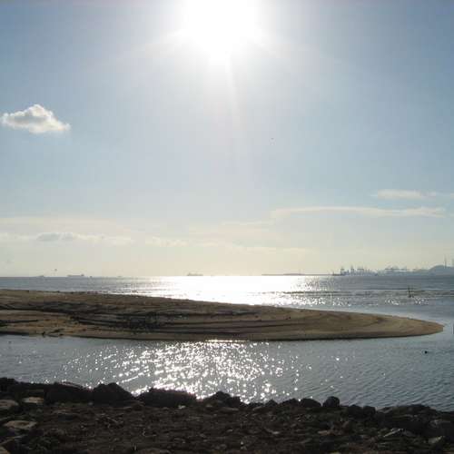 在水中央
