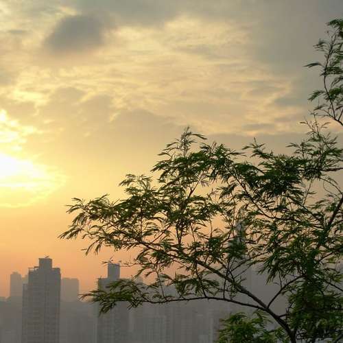 晚霞樹影伴