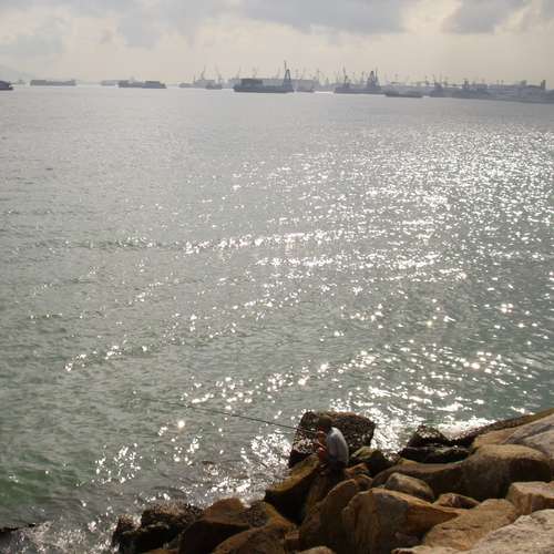 Reflection from seawater and fisher.