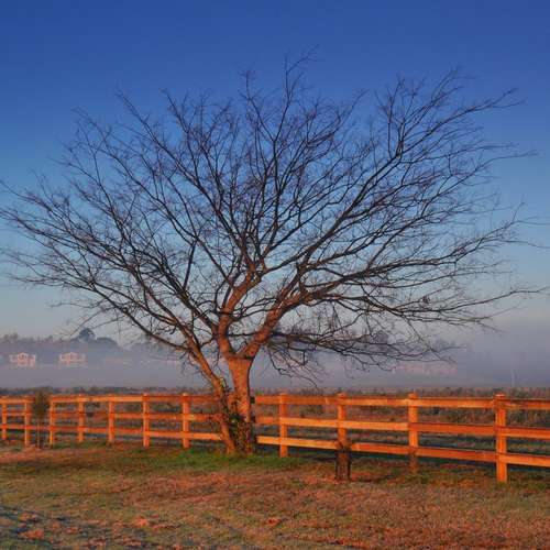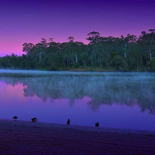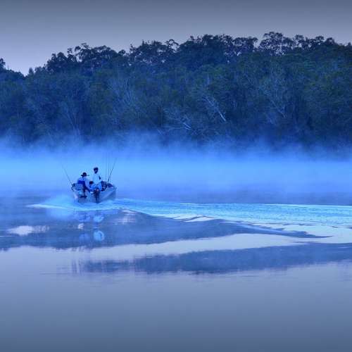 晨霧水影