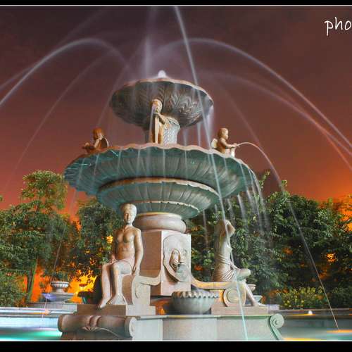 夜、噴泉